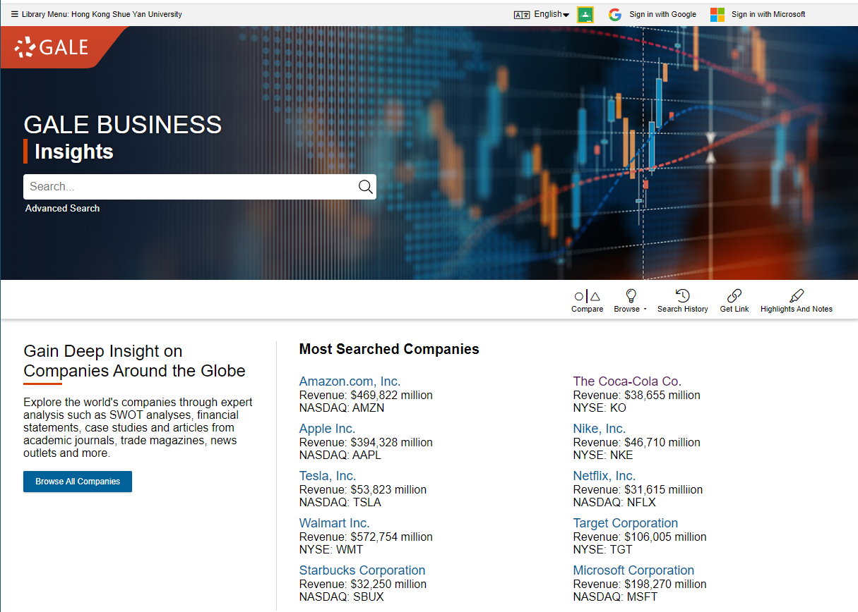 Gale Business: Insights is a unique source for international business intelligence, offering the most comprehensive and convenient way to find case studies, in-depth statistical data coupled with deep research, and the ability to compare global economies, countries and industries.