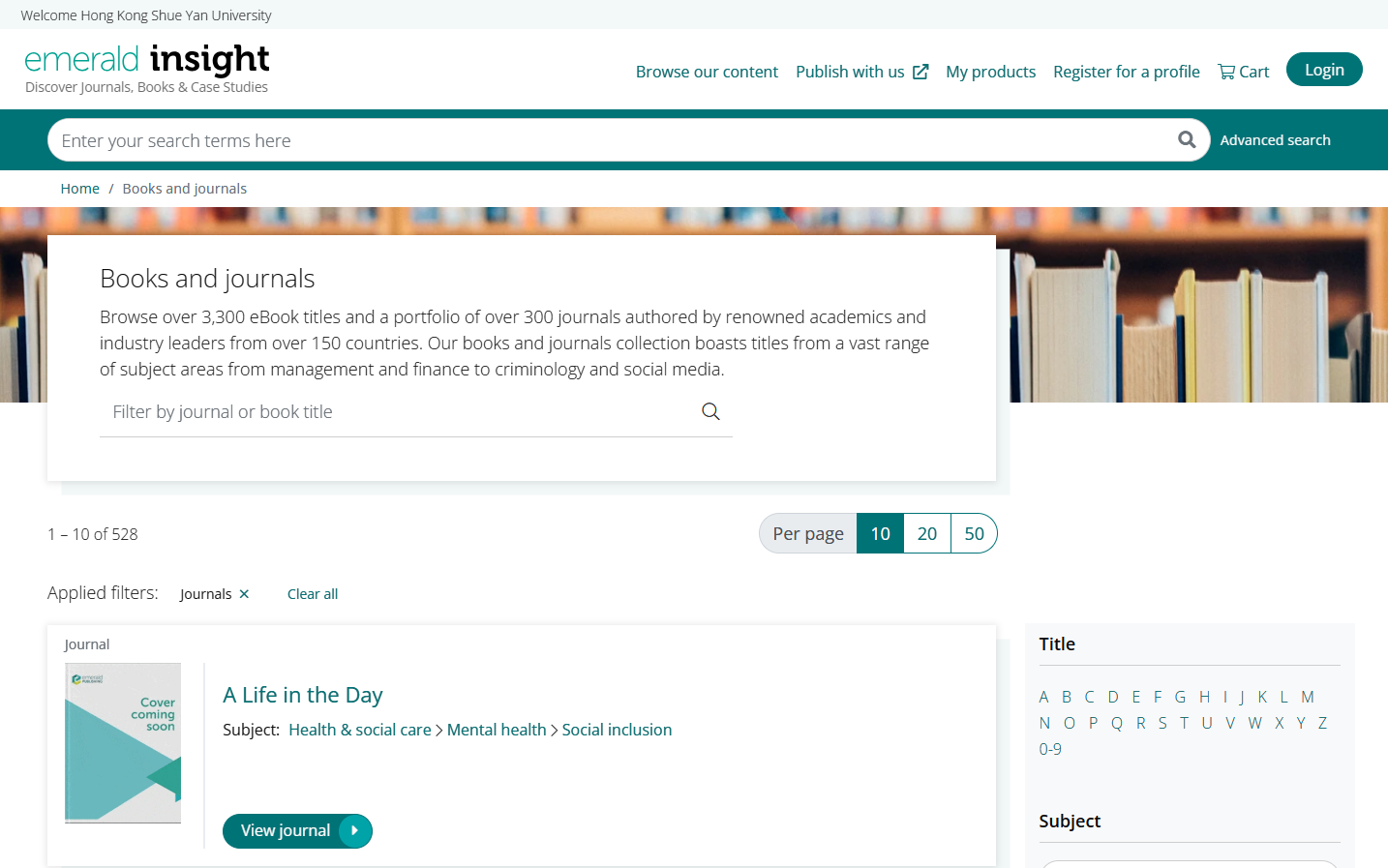 Emerald Accounting, Finance and Economics eJournal Collection contains over 3,300 eBook titles and over 500 journal tiles covering Accounting & Finance, Business Education, Economic, Huamn Resource & Organisational Behaviour, Management Science & Operations, Research Methods, Business Strategy, etc.