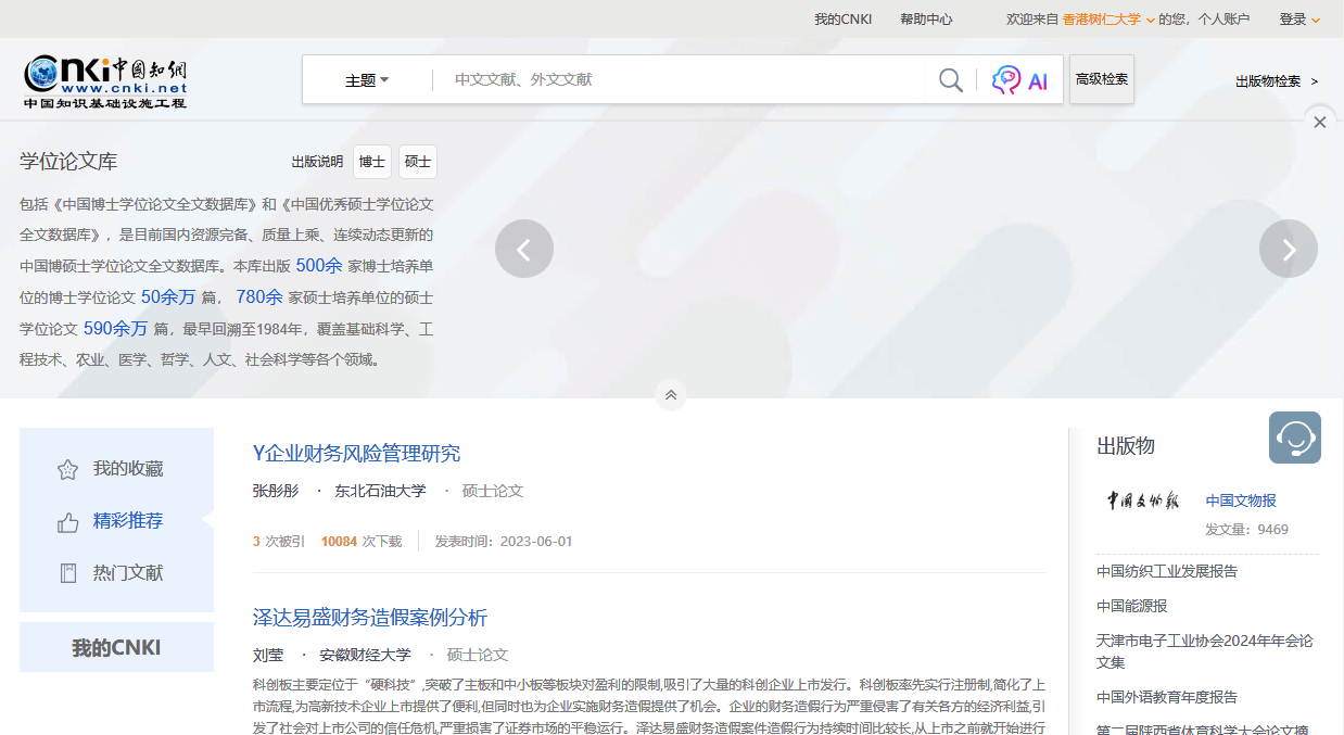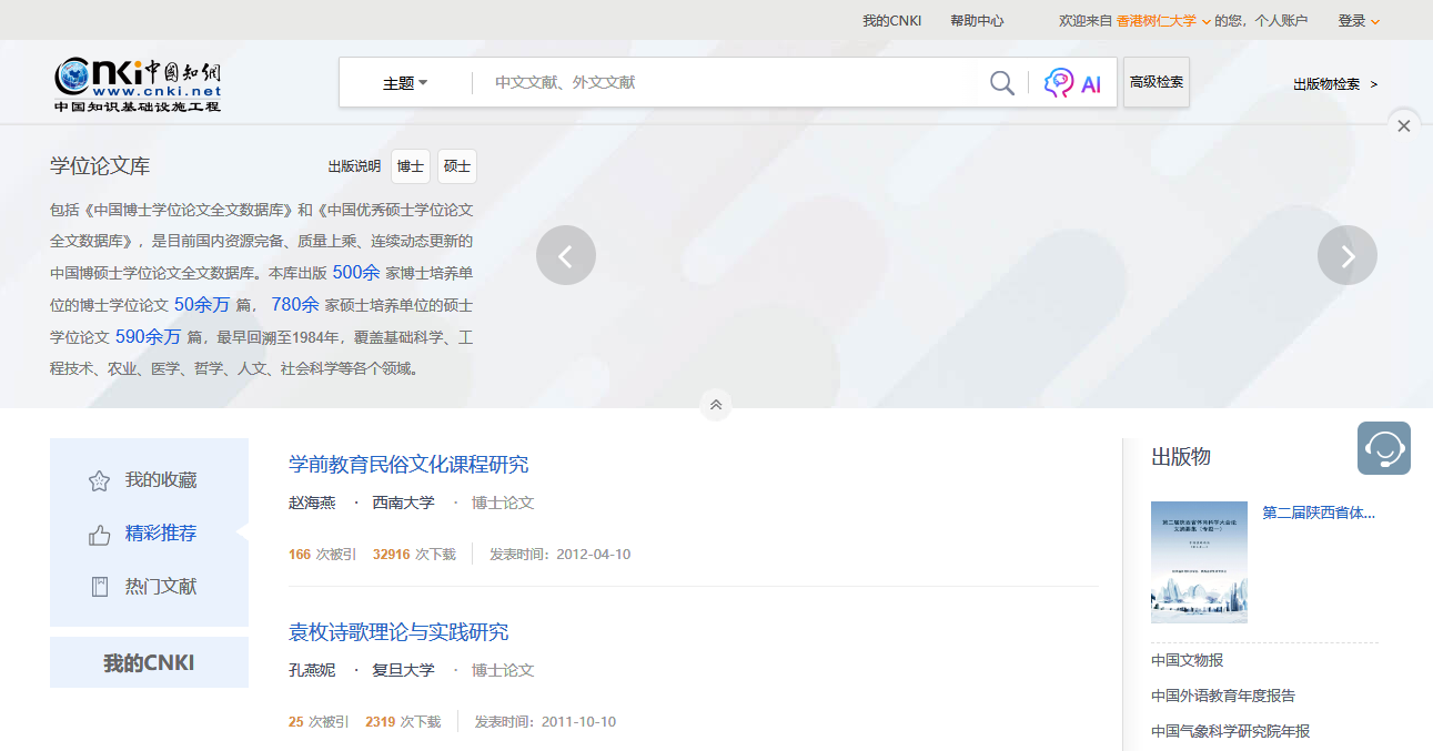 CNKI - 中國期刊全文數據庫 (CAJD)是第一部以全文數據庫形式大規模集成出版學術期刊文獻的電子期刊,是目前具有全球影響力的連續動態更新的中文學術期刊全文數據庫。CAJD還是“十一五”國家重大網絡出版工程的子項目,是《國家“十一五”時期文化發展規劃綱要》中國家“知識資源數據庫”出版工程的重要組成部分。收錄國內學術期刊8490餘種,全文文獻總量6200餘萬篇。