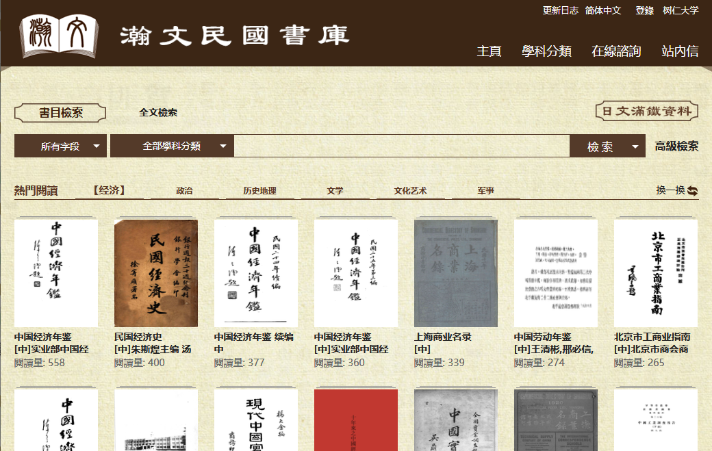 《瀚文民國書庫》內容豐富、分類專業、具備全文檢索功能,可為研究中國近代的歷史、文化提供深入的幫助。 《瀚文民國書庫》中收錄的所有圖書均實現了全文數字化(數量超過二千萬頁),可檢索文字數量超過60億字。支持全文檢索、精確檢索和模糊檢索;支持多字段、多條件的組合檢索;支持OR、AND邏輯檢索。無需安裝插件,支持簡繁體切換。可在線閱讀、可下載全文。