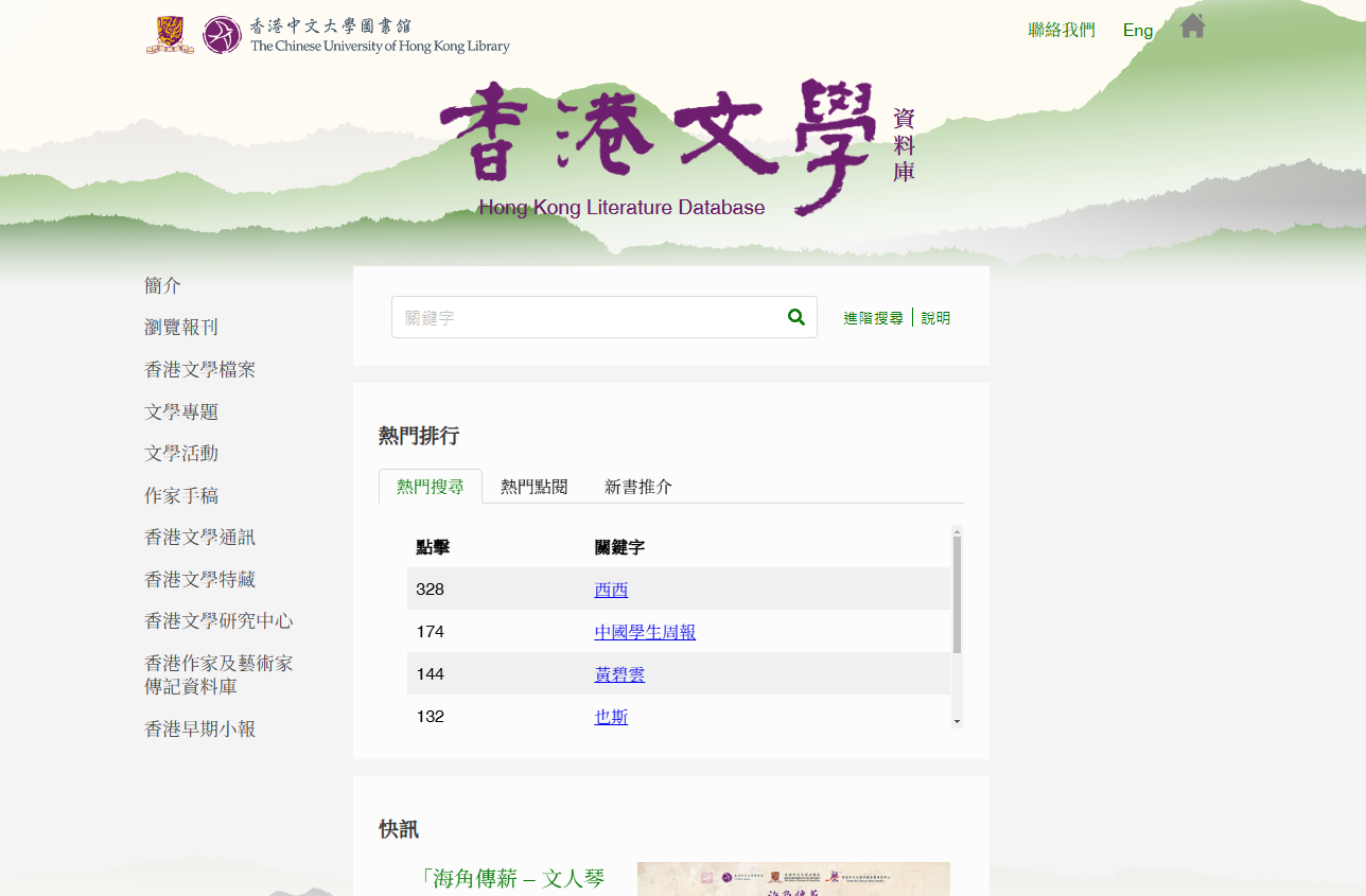 此外,本資料庫提供多項與香港文學相關的網上資訊,如文學專題、文學活動及作家專輯。除具備多項基本檢索功能外,部分文章更提供全文影像,方便讀者參考。