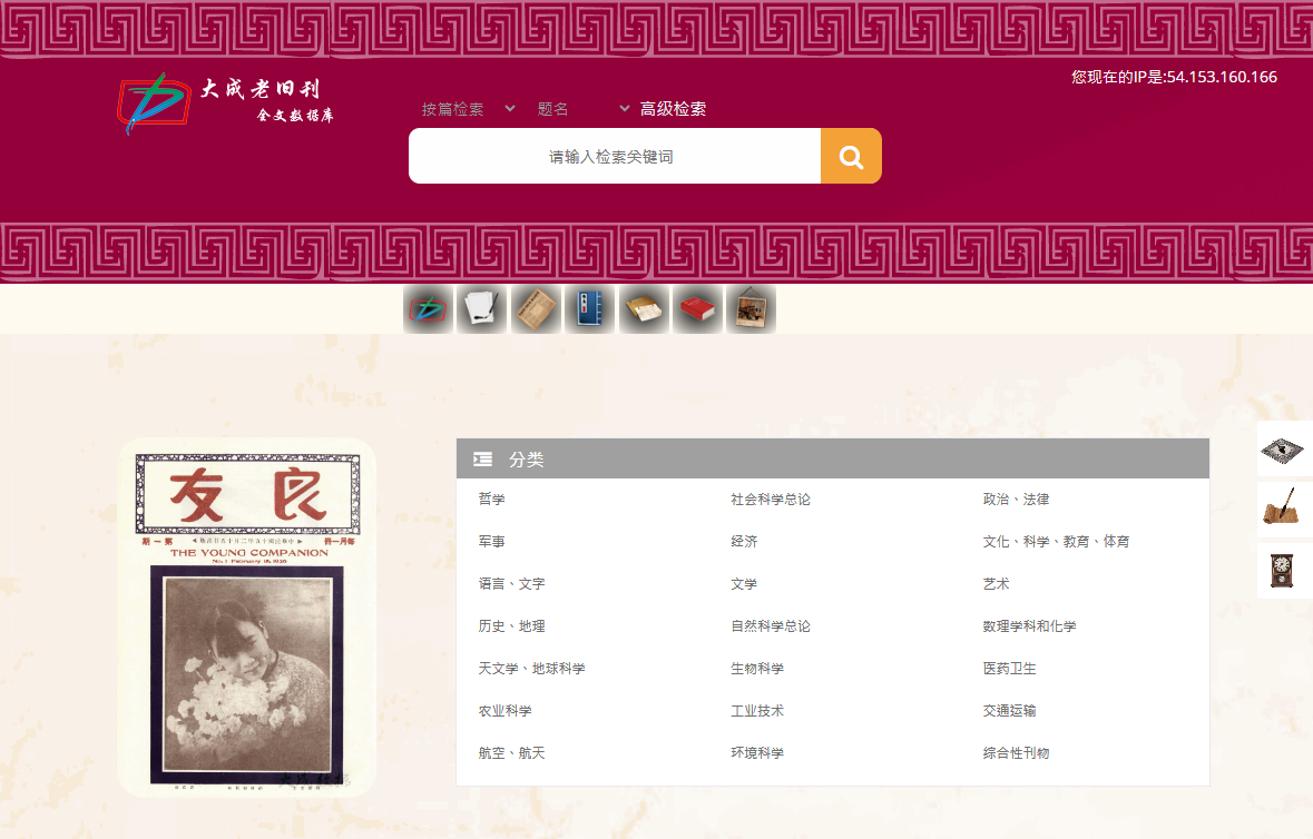 《大成老舊期刊全文數據庫》收錄清末到1949年近百年間中國出版的7000多種期刊,共15萬餘期。