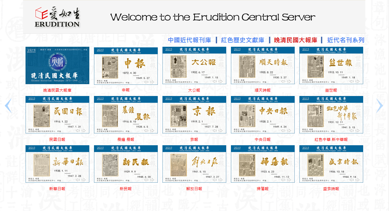 《晚清民國大報庫第一輯圖像版 》收錄自清同治十一年(1872年)至中華民國三十八年(1949年)七十餘年間,存續時間長、影響範圍廣、史料價值高的大型報紙共計10種,晨報晨鐘報、大公報、京報、民國日報、順天時報、益世報、中央日報、申報、紅色中華新中華報、新華日報等。從不同立場、不同視角和不同層次,全面反映十九世紀後半葉、二十世紀前半葉波瀾壯闊的中國近代史,忠實保存近百年間中國國家政治和社會生活的珍貴史料,具有重要的學術意義。