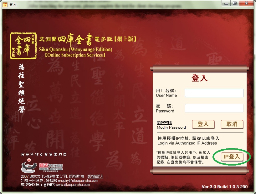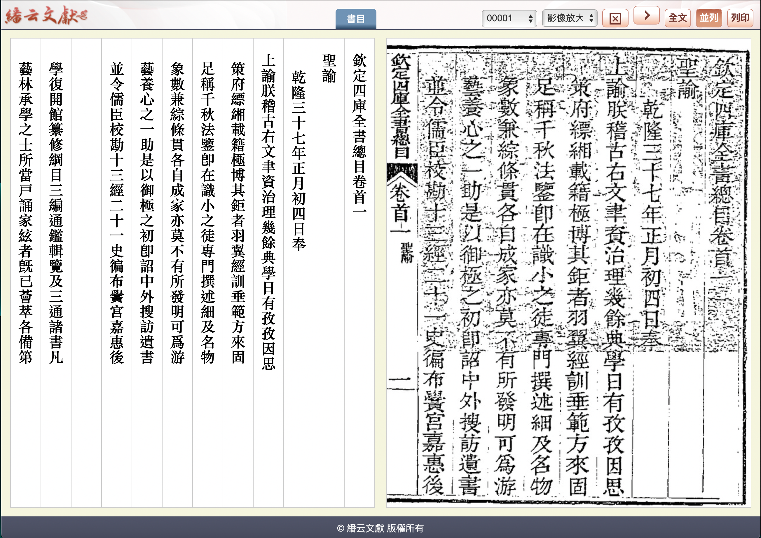 整合多種具歷史研究價值的古籍文獻【原雕龍中日古籍全文資料庫升級平台】 包含:《道藏》、《道藏輯要》、《四部叢刊》、《續四部叢刊(四部備要)》、《永樂大典》、《古今圖書集成》、《敦煌史料、《清代史料》、《中國地方誌》、《中國地方誌續集》、《中國地方誌三集、《日本古典書籍庫》、《續修四庫全書》、《六府文藏》、《四庫全書》、《中國民間文學》、《清代科舉硃卷》、《全四庫存目》、《四庫未收書》、《四庫禁毀書》、《醫家庫(1~2輯)》 、《金石庫(1-2輯) 》。