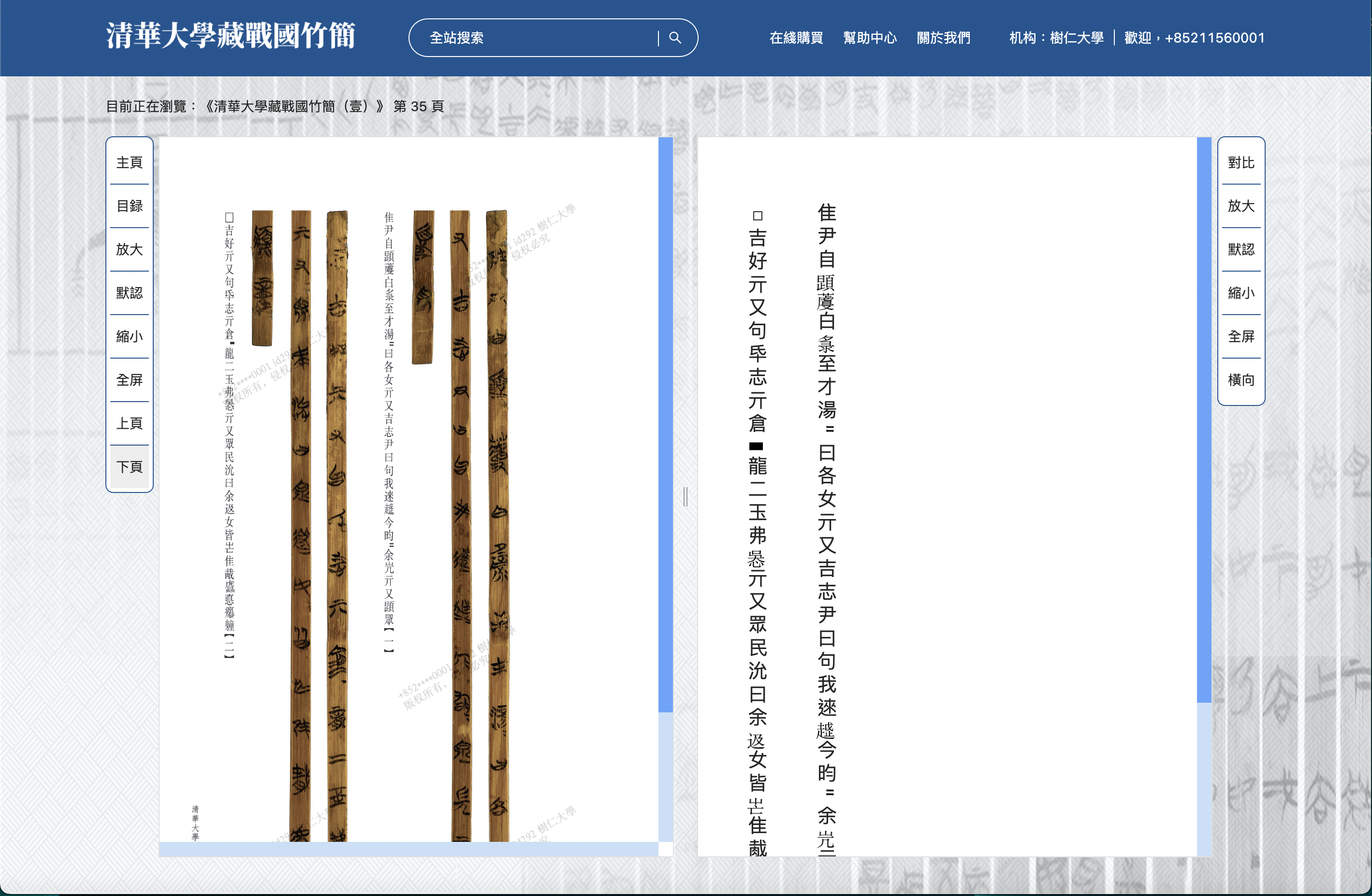清華大學藏戰國竹簡電子書平台清華大學出土文獻研究與保護中心對經校友捐贈的戰國竹簡展開初步釋讀,經綴由合編排後初估,清華簡共計2388枚;竹簡時代屬於戰國中晚期,抄寫時間確定為公元前305年前後。這批竹簡,文字大多書寫精整,其中至少有63篇文獻典籍。