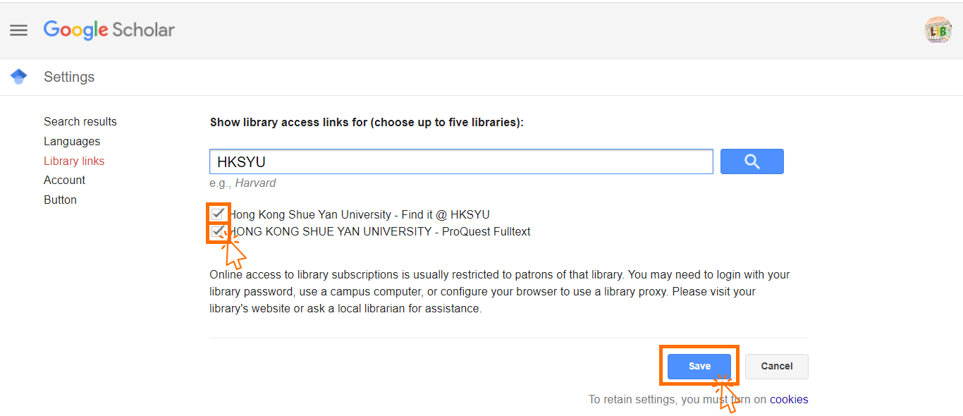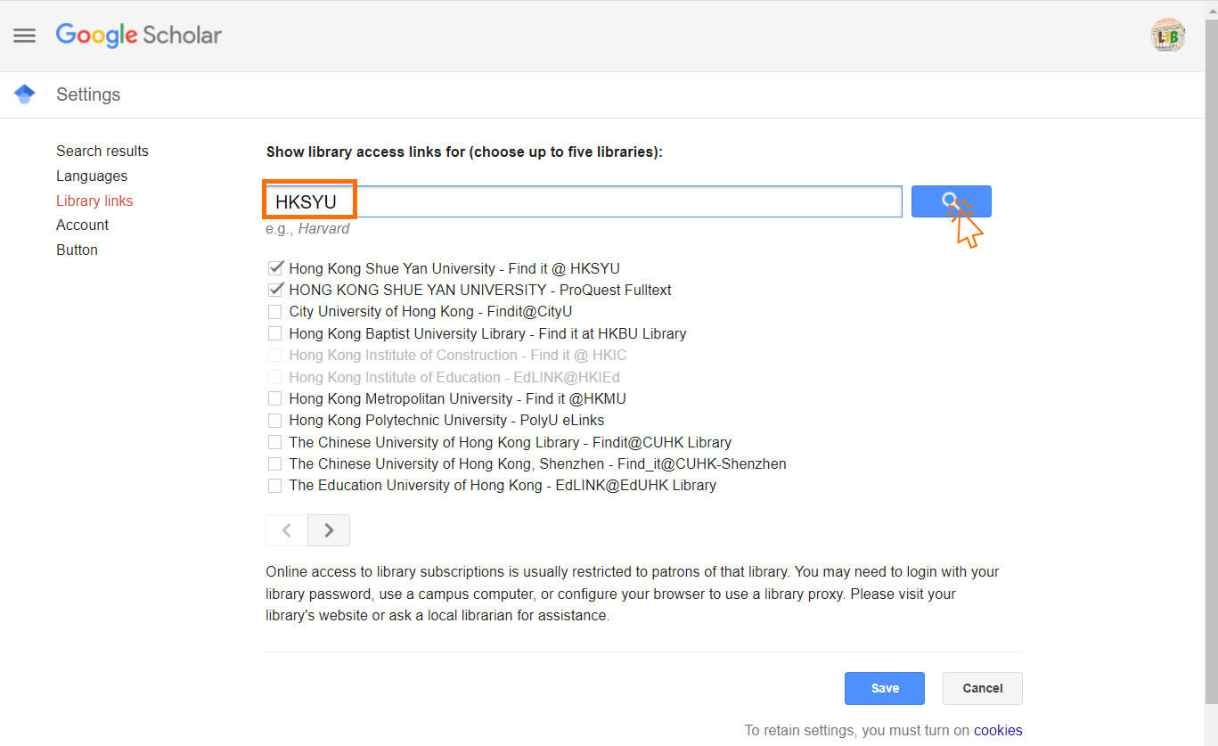 Step 7: Tick the selection contain "HKSYU" and save the setting