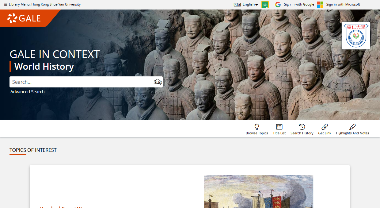 This database offers full text from more than 2,500 reference books, encyclopedias and non-fiction books, full text for about 170 history magazines, 112,000 historical documents, 119,000 biographies of historical figures, more than 113,000 historical photos and maps, and more than 80 hours of historical videos.