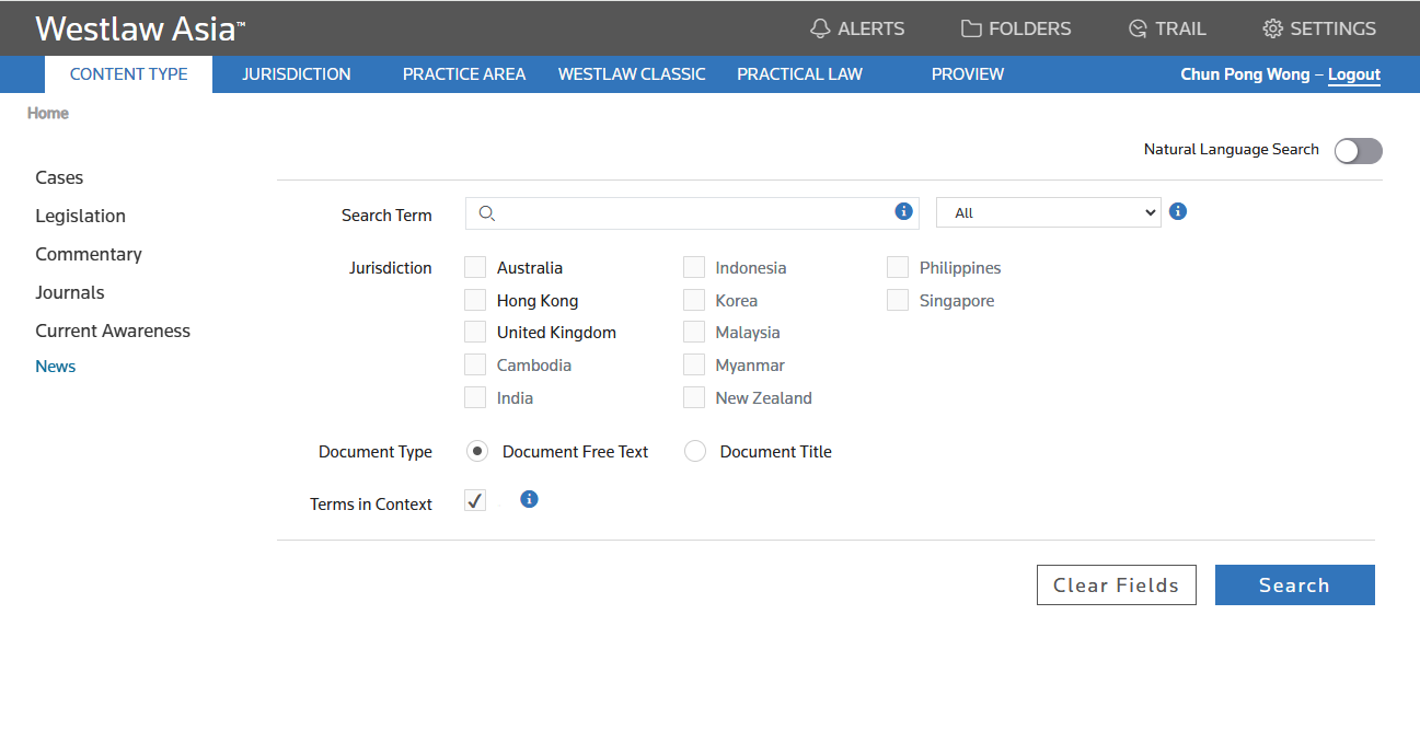 Westlaw Asia is an online legal research service which provides a unique collection of legal and regulatory information by combining materials from renowned content providers such as Sweet & Maxwell, Thomson West, ELLIS Publications, Lawbook Co. and Carswell. The collection includes case law, legislation, law reviews, treaties, and directories.
