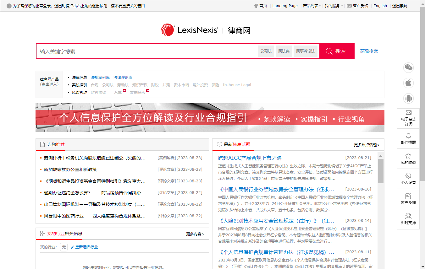 - Provides Chinese laws, regulations, case analysis, newsletters, articles and legal tools