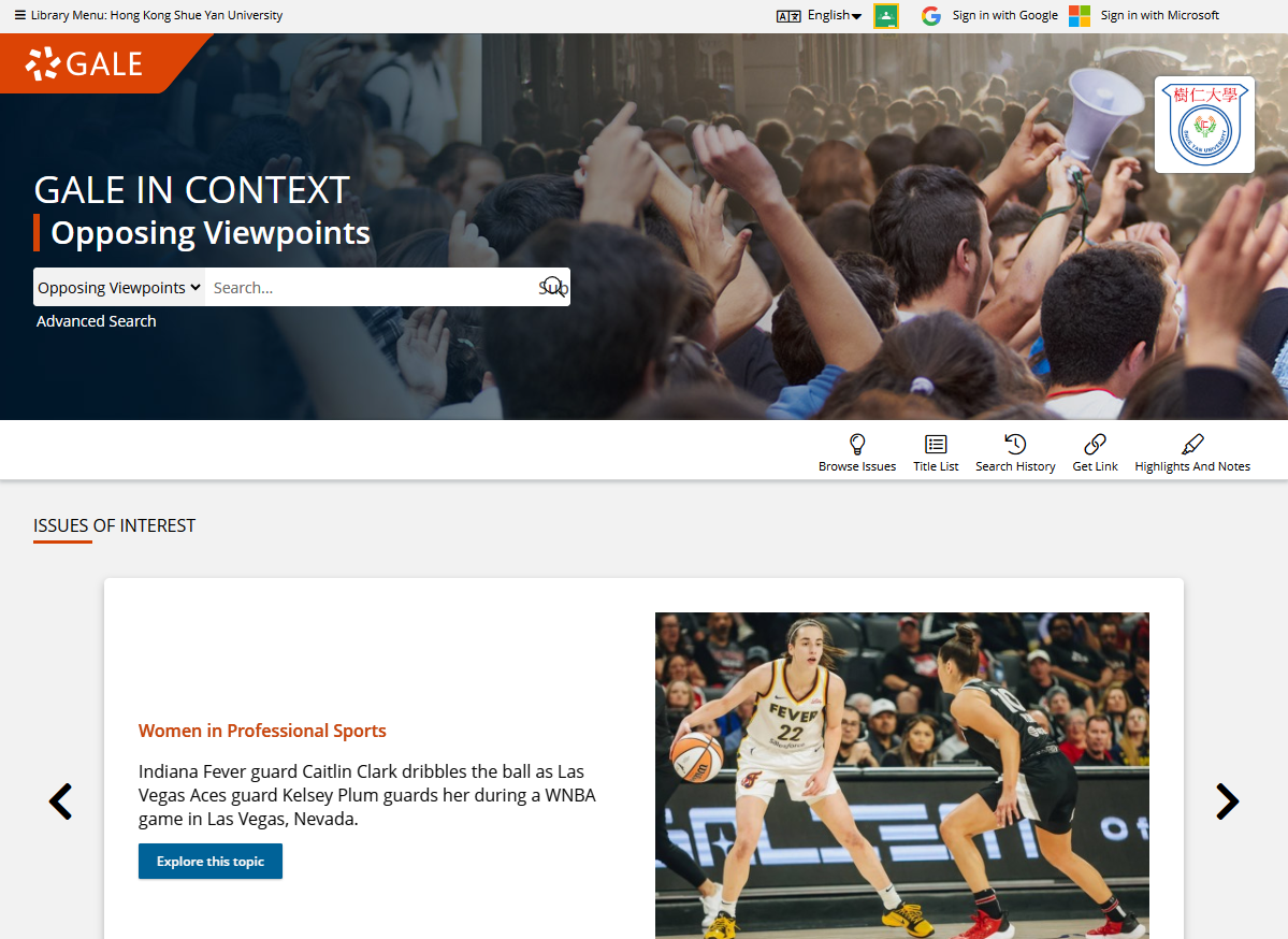 Gale In Context: Opposing Viewpoints is an engaging online experience for those seeking contextual information and opinions on hundreds of today's hottest social issues. Drawing on the acclaimed Greenhaven Press series, the solution features continuously updated viewpoints, topic overviews, full-text magazines, academic journals, news articles, primary source documents, statistics, images, videos, audio files and links to vetted websites organized into a user-friendly portal experience.