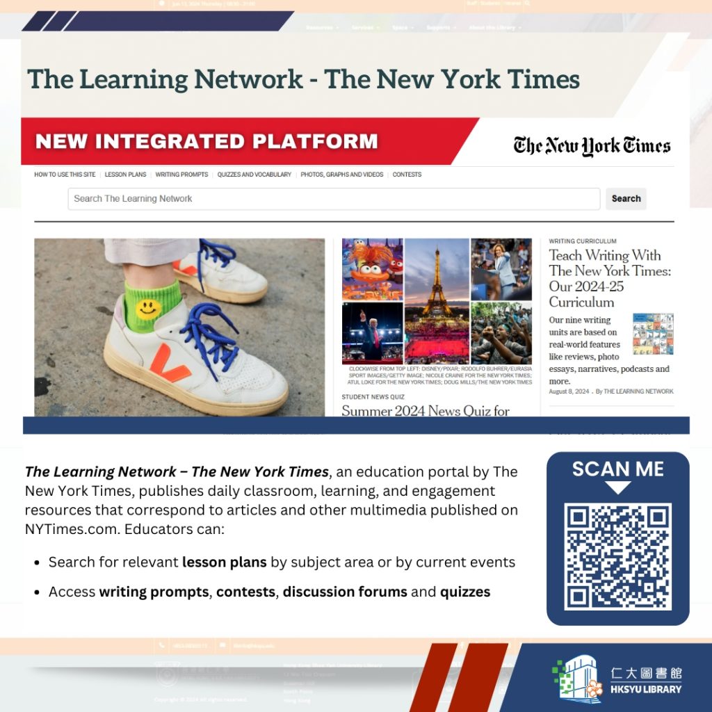 The Learning Network – The New York Times has integrated both “The New York Times” and “The New York Times in Education” platforms. This new integrated platform shares teaching and learning resources that correspond to articles and other multimedia published on NYTimes.com.