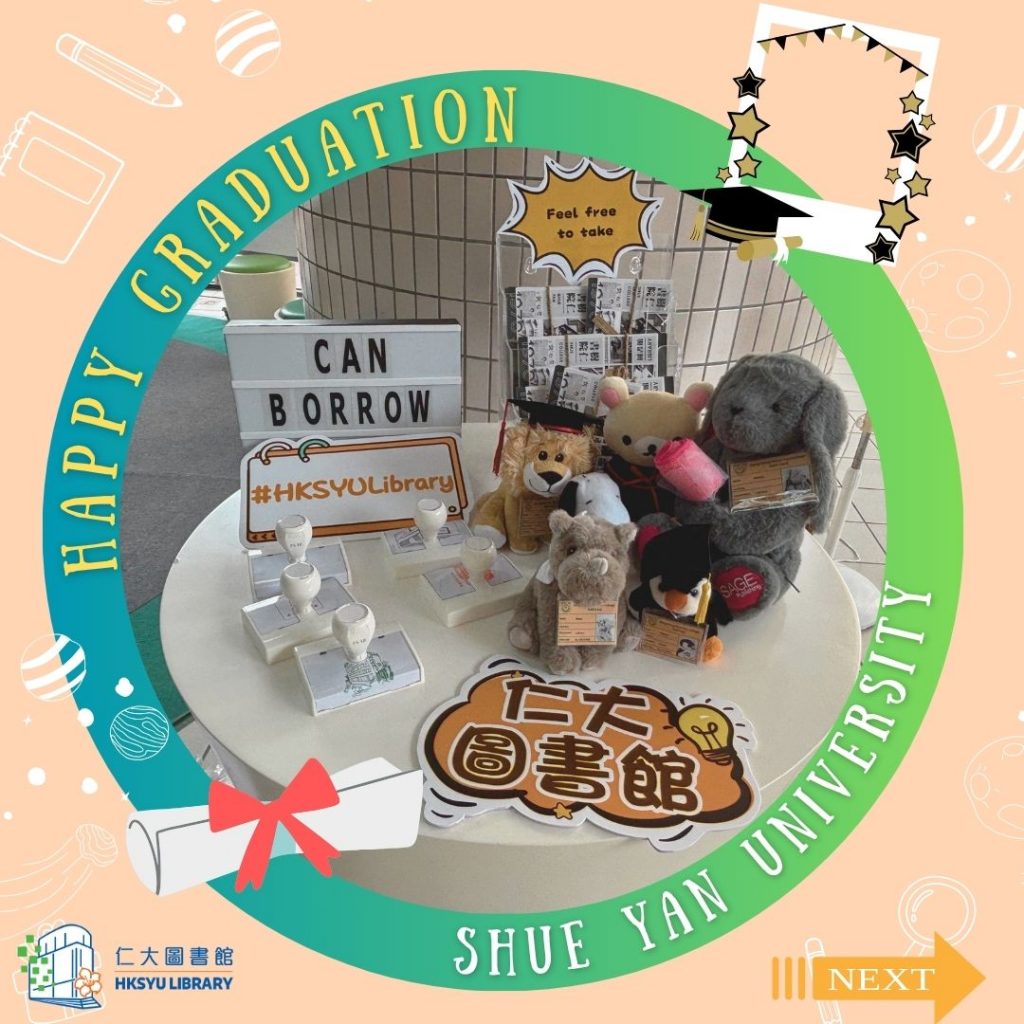Congrats! Every year, the Library Complex is a popular photo spot for graduate photos. To celebrate this special milestone, the Library has prepared fun props like dolls and signboards for your pictures. Simply choose your favorite and snap a photo with our beautiful rhododendron bush out front! Don’t forget to grab a free postcard and stamp it, too!
