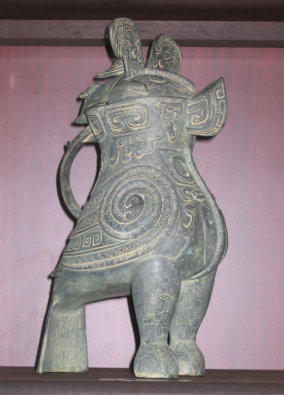 鑄於商代後期之盛酒器. 原器為一對兩只, 整個尊是平面和立體的完美結合。